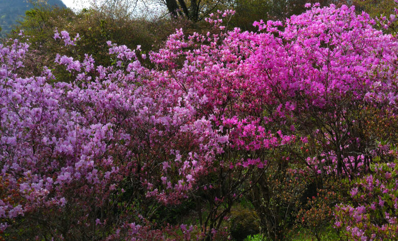 ミツバツツジは、「ツツジ」と言っても、市街地の街路樹などのツツジや高原にあるレンゲツツジとまったく違い、桜のごとく、春に、葉が出る前に花だけが咲きます。
