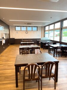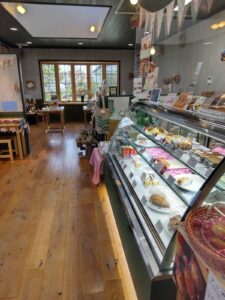 お菓子工場直営店なので、棚には定番商品のほか袋詰めのアウトレット品もあり、とても安い価格でしかも美味しい!と大人気です。店内はお菓子工場のお店らしい明るくメルヘンチックな雰囲気です。カフェ(イートイン)スペースもあります。