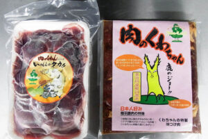 その一つがジビエ(野生動物)で、地元の猟友会が持ち込む鹿やイノシシなどの肉を併設の処理場で清潔に解体処理し、ヨーロッパや名古屋の有名ホテルでジビエ料理を学んだ名物シェフが調理します。レストランでは時期により、「猟師焼き定食」や「鹿肉のから揚げ」などが食べられ、直売所では「 鹿肉まん」や「やわらかジンギスカン」などが購入できます。それらは、ネットでも購入できます。
