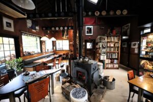 根羽村のもう一つの特徴が、林業を今も村民による森林組合で村の産業として維持していることです。村の90%以上がスギやヒノキの森林で、なかでも「根羽杉」はブランドとなっていて、「ネバーランド」のホール・レストラン・宿泊施設などにも使われていて美しいです。直売所で、木工のクラフト品を購入できます。