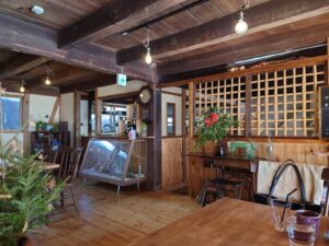 人気TV番組の「ぽつんと一軒家」に出てくるような山奥でアクセスが少々難しいロケーションにあり、縄文時代の竪穴式住居を模したユニークな茅葺きの建物で、内部は狭いです。