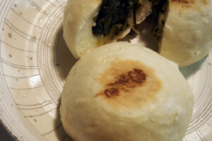 おやきの中に入れる具には、ナス・キノコ・アンコ・炒めた野沢菜・切干大根・ピリ辛野菜などいろいろあります。