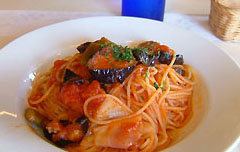 「マリアージュ」の地野菜を使ったパスタイタリアンレストラン「マリアージュ」も併設されているので、食事・ワインの試飲・ワイナリーの見学・食材の買い物をセットで楽しめます。レストランは、地元の野菜や山辺ワイナリーのワインを使った料理と、アルプスの眺望の良さで人気です。