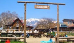 北に車で3分の距離に、乗馬や動物と触れ合える体験などができる観光施設の「滝沢牧場」があります。