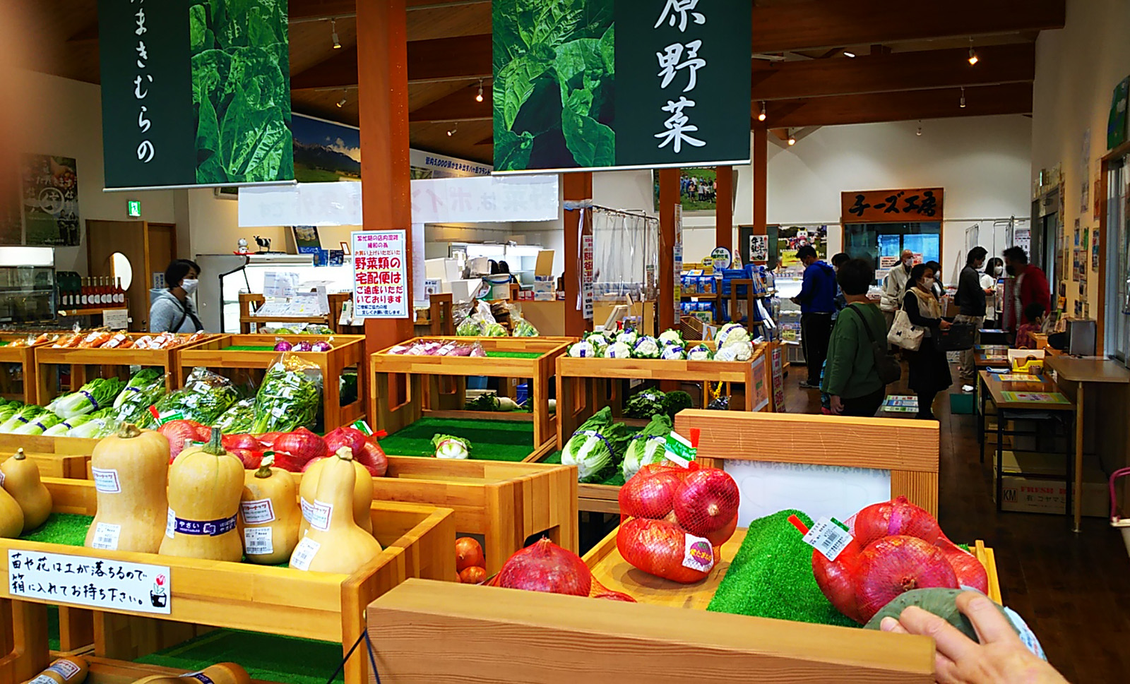 南牧村の施設ですが、ヤツレンが運営していて、ヤツレンの牛乳・ヨーグルト・チーズなど乳製品のコーナーがある他、レタス・キャベツなど地元の高原野菜が安く購入できます。
