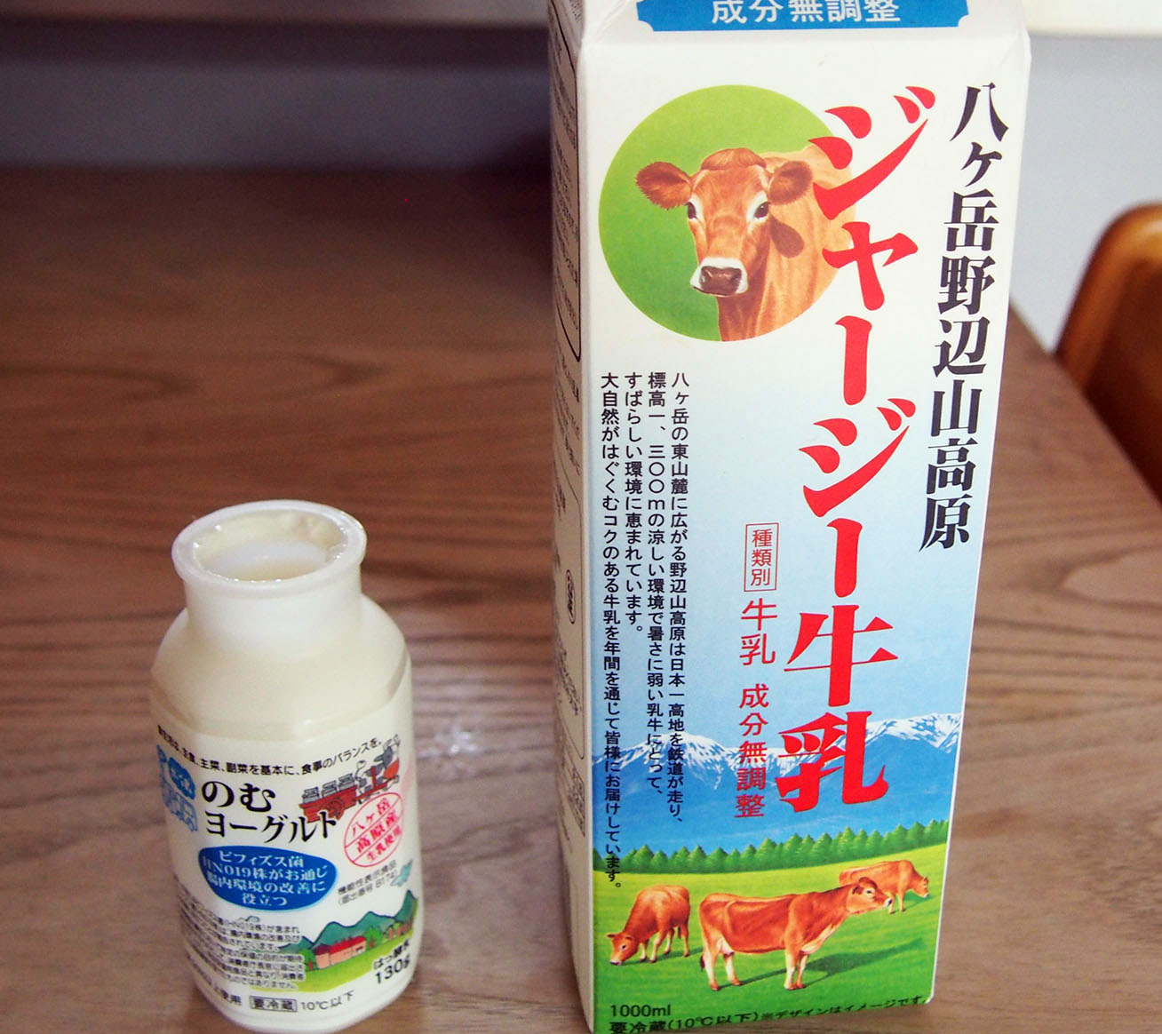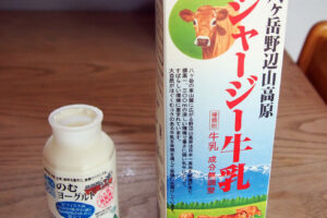 乳脂肪分が3.6%と高い「八ヶ岳野辺山高原3.6牛乳」(相性「ポッポ牛乳」)の他、少し値段が高いジャージー牛乳も売られています。