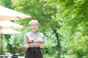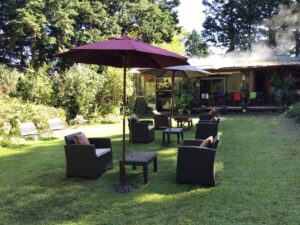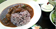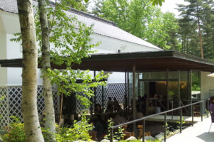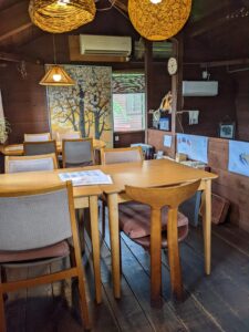 十四豚カレーセットカフェは半屋外と屋外のテーブルですばらしい森を見ながら、ヘルシーな食事を楽しめます。以前は「ヒーリングテラス」という名前でハーブを使ったたくさんの種類のデザートやドリンクがありましたが2021年秋に「くらすわベーカリー&カフェ」になり、種類が減りました。