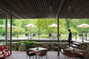 ショップ内部「養命酒健康の森」は、中央アルプス駒ヶ岳をバックにした抜群のロケーションにある、養命酒の製造工場に併設されたショップ・カフェ「くらすわベーカリー&カフェ」と、散策コースになっている森からなる施設です。