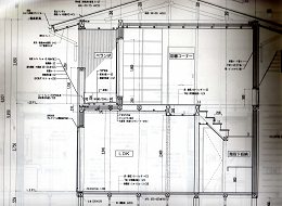 設計士の方と毎週打ち合わせをすること3ヶ月、右の画像の「矩計図(かなばかりず と読むらしい)」など30枚もの実施設計図面ができ、いよいよ建築(施工)の見積もり開始となった。