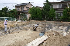 マイホームは、20人もの職人の方々に一同に会して頂いた「発注会」も無事終わり、基礎工事が進んで写真のように家の輪郭が感じ取れるようになってきた。
