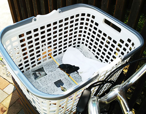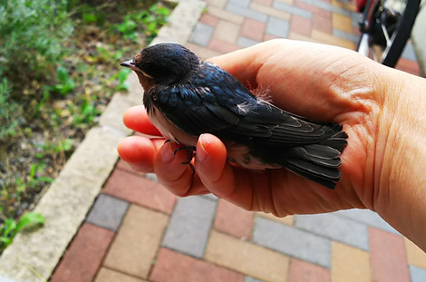 つかまえて保護すべきかどうか迷ったが、野生動物は難しいし、近くに親鳥がいるかもしれず、近くにいた人とも話して、そのままにしました。