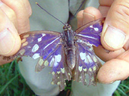 今日の信州自遊塾の講座「長峰山で森、里山を考える 」で、蝶の「オオムラサキ」を見せてもらった。