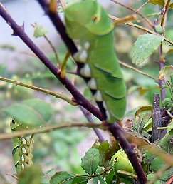 庭の山椒の木に、アゲハチョウが卵を産んだようで、幼虫が数匹すくすく育っている。
