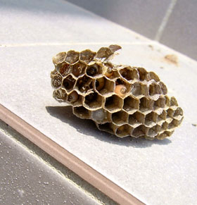 ふと気づくと、玄関の軒下に、数匹の蜂が巣を作ろうとしている。