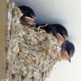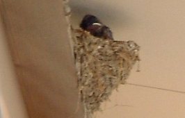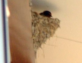 その後、見事に巣は完成し、下にフン受けを作ってやり、子ツバメが見られるのが楽しみと思って時々見ているのに、一ヶ月ほど経っても、雛が孵った気配がない。