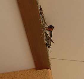 鳥、特にツバメは好きだし、燕が巣を作る家は幸運も来ると言うし、でも、この位置に作られると、フンで壁やデッキが汚れるし。。