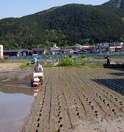 連休の終わりに、お隣さんの田んぼで田植えがあり、今年も、水を張った田んぼに稲が等間隔に植えられた美しい光景が見られる季節になった。
