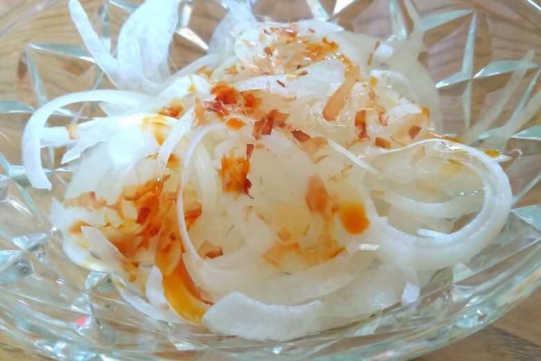 ただ単にスライスして生で食べると、玉ねぎ臭さや辛さはなく、甘くてジューシーで、そのままサラダとして食べられます。