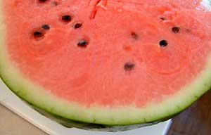 早い梅雨明けと同時に、露地栽培のスイカも例年より早めに出荷開始されたとのことで、さっそく買いに行きました。