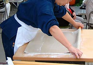 蕎麦打ち段位4段の方のソバ打ちのワザを目の前でナマで見せてもらいました。