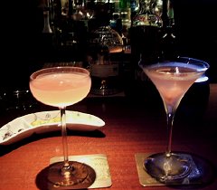 左の桜のリキュールを使ったのは綺麗だけどかなり甘く、右のジンベースの方が美味しかった。