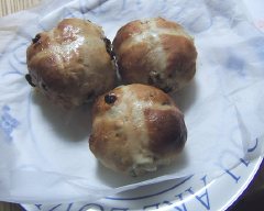 「イースター・バンズ(buns)」とか、十字架の模様を入れて焼くので「ホットクロス・バンズ」とか言うみたい。