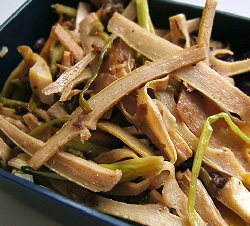 先日ハチク(淡竹)のタケノコを頂き、今日のお弁当にはハチクのタケノコの炒めものを入れてもらいました。