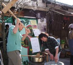 知人に頼まれて、松本のナワテ通りで餅つきをした。