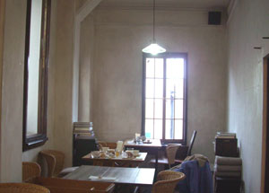 80年も前の昭和初期に建てられた薬局の建物を改装しているので、しっくいの壁は、最近作られた擬似的なものではなくホンモノ。