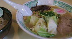 子供が夏休みで昨日と今日は弁当も夏休みとなり、ランチは、会社の近く、中町の女鳥羽川沿いに今年オープンした中華そば店&居酒屋「三代目つるよし」に食べた。