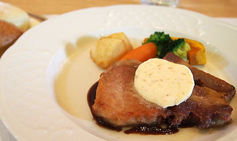 上高地の宿、白樺荘さんがビルの1階~3階をレストランとして使っていて、肉料理が美味しいです。