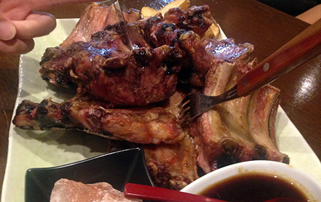 写真のメインディッシュ、これも日本では珍しい、豚骨付き肉などとても美味しかったです。