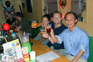 人気の理由は、チャージとかお通しがなく、ワンショットで安く気軽に飲めるバーであることと、ナワテ横町という狭い路地にあって独特の雰囲気があるからかな。
