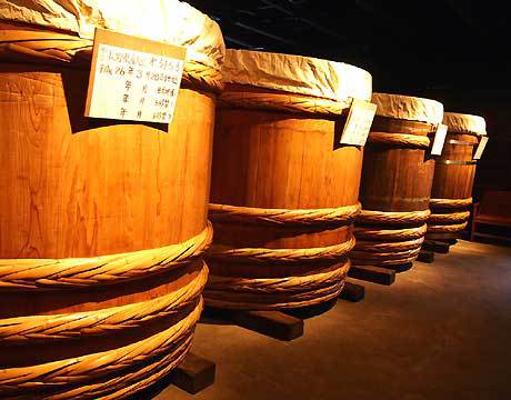 人の身長以上の木樽が並ぶ蔵は、ど迫力。