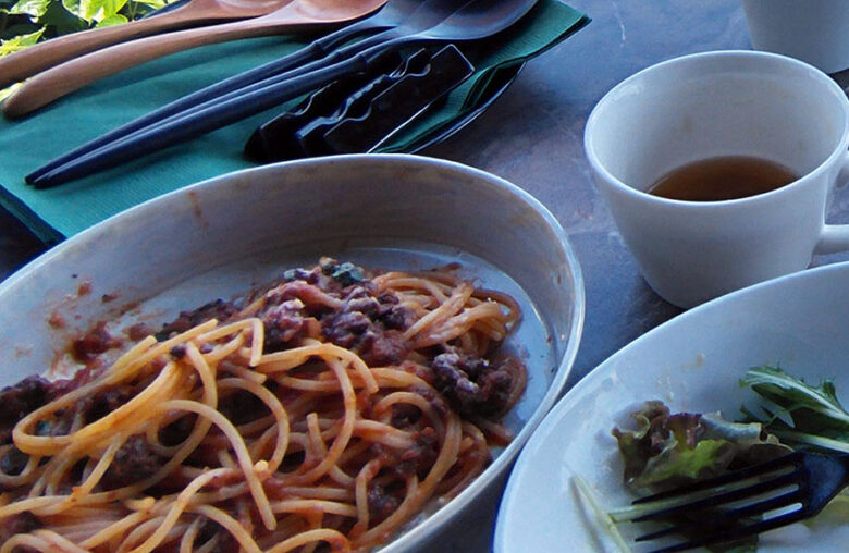高台のテラス席からの絶景を見ながら、フランス仕込みのクロワッサンサンドイッチや鹿肉のパスタとケーキを頂きました。