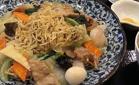 上田のお昼に行って食べた中華料理屋「檸檬(れもん)」のあんかけ焼きそば。