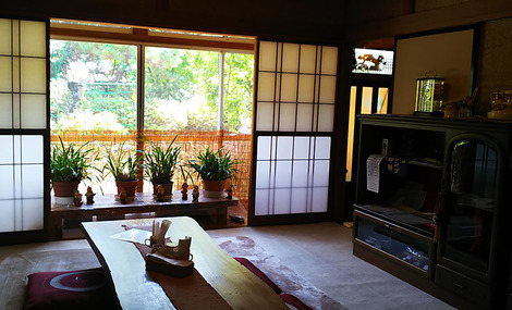 ペンション時代の洋風の小物と、和風の建物がマッチしたとってもお洒落な空間になっています。
