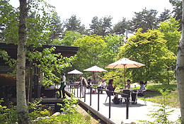 駒ヶ岳をバックにした抜群のロケーションにあり、併設されたショップ・カフェと、森の中の散策コースがあります。