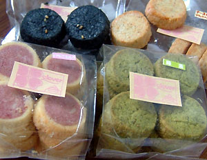 手作りの丸いクッキーが、袋に入っている形も、四つ葉のクローバーになっている。食べるのが惜しい感じです。