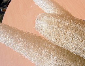 一株で10本以上も採れた実を、ネットで見つけた「煮沸する」という方法で、見事なヘチマたわしができました。