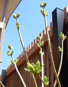・庭のライラック(写真)やヤマボウシは芽吹き