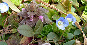 寒い寒いと思いながらも道ばたや庭を見ると、オオイヌノフグリの小さい花がいくつも咲いている。ヒメオドリコソウやナズナも少し。