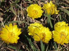 何?この暖かさは!もしやと思ってうちの隣の畑を見に行ったら、やっぱり咲いてました、福寿草。それも咲き始めというよりいきなり満開。