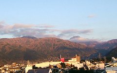 今朝は、空が澄み渡り、少し冠雪したアルプスをバックに黄色が映えていた。