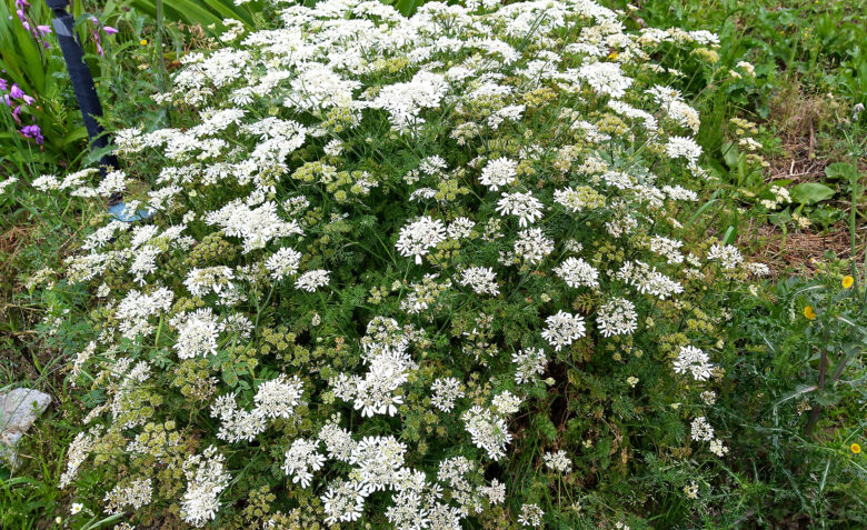 少し離れた隣の人の菜園にも咲いていて、こぼれ種で繁殖したのでしょうか。