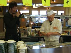 今日は、安曇野の英語公式観光サイトのスタッフが、日本のユニークな食文化の「回転寿司」を海外に紹介するドキュメンタリーを制作したいということで、「廻る寿司処 二代目あっちゃん」へ。
