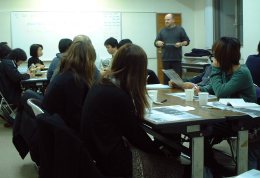 宿・レストランや観光施設の方々の、外国人観光客に対する接客の不安を取り除くため、英語・韓国語・中国語の外国人講師が、簡単な会話や外国の文化を教えるという試みです。