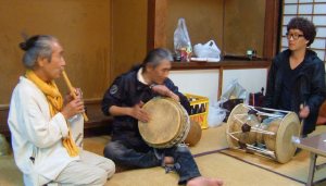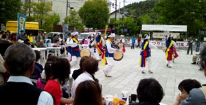 韓国から来日した15名の仮面劇が終わったところでちょうど雨となり、以降の予定が中止になったのは残念でしたが、その後の懇親会で深夜まで交流が続きました。
