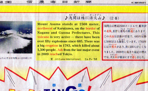 信濃毎日新聞の毎週土曜日の子ども欄で、一月から英語のコーナーが新しく始まりました。