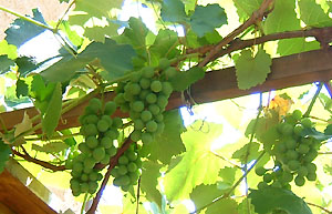 ウッドデッキのブドウ棚のブドウを、今年初収穫しました。